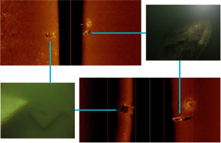 首先使用低欧范围搜寻,550kHz工作时可覆盖海底300米条带的范围。标记潜在可能的目标物,第二步用高频率细致搜索被标记的海域,从而确认目标物的位置信息。